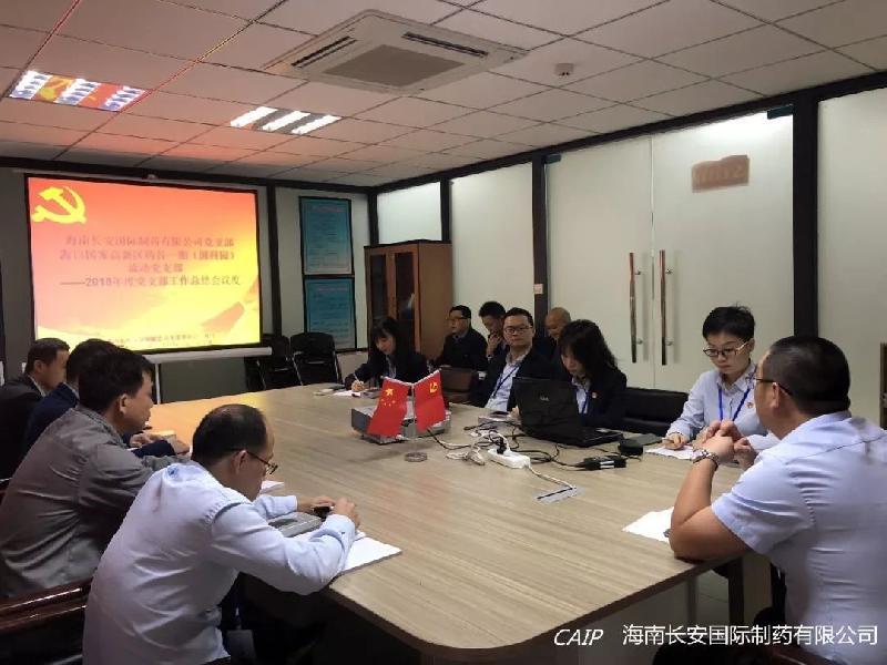 2019年1月21日上午,海南長安國際制藥有限公司黨支部和??趪腋咝聟^藥谷一期(國科園)流動黨支部年度總結會議順利召開。