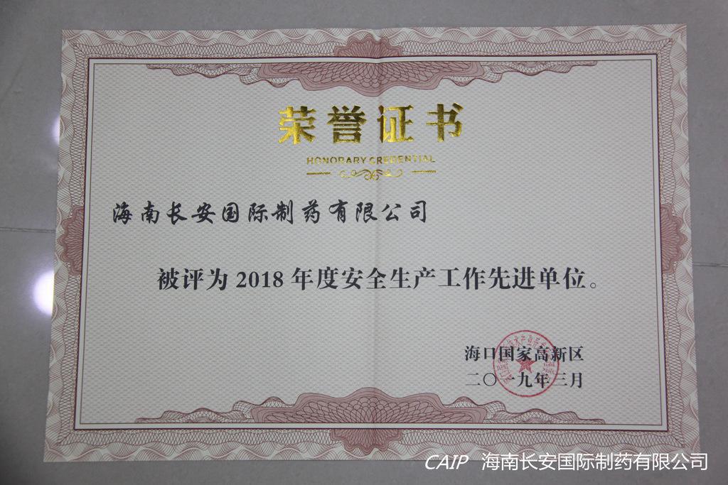 3月21日上午,在海口國家高新區(qū)2019年第一次安全生產(chǎn)工作會議暨2018年度安全生產(chǎn)工作表彰大會上,海南長安國際制藥有限公司榮獲“2018年度安全生產(chǎn)工作先進(jìn)單位”的表彰。