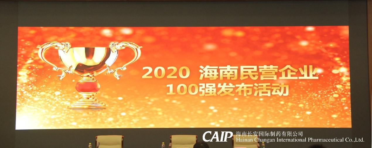 8月28日下午,海南省工商聯在省博物館多功能廳召開“2020海南民營企業100強”發布活動,向社會公布“2020海南民營企業100強”榜單,海南長安國際制藥有限公司成功入榜!