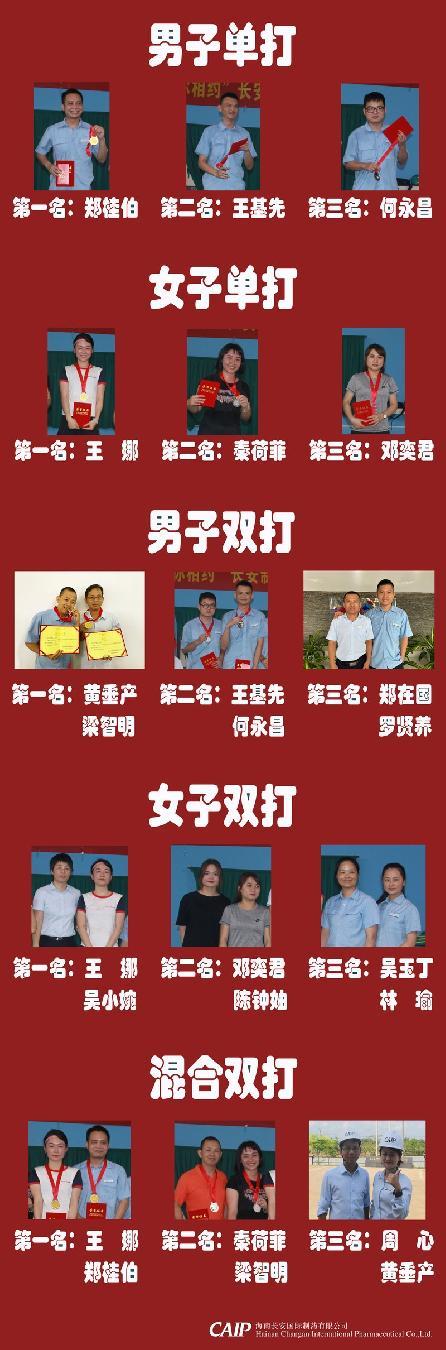 一份拼搏一份收獲,汗水會蒸發,但榮譽不會褪色。“陽光長安•羽你相約”長安制藥2021春季羽毛球比賽已經能落下帷幕,本次活動不僅豐富了長安人的業余生活,也在員工之間、部門之間形成團結友愛、溫馨互助的融洽氛圍,加強公司凝聚力的同時,也促進了長安人健身運動的蓬勃發展。