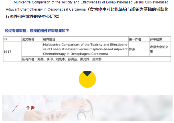 洛鉑對比順鉑在食管癌輔助化療中的研究論文獲CCO收錄